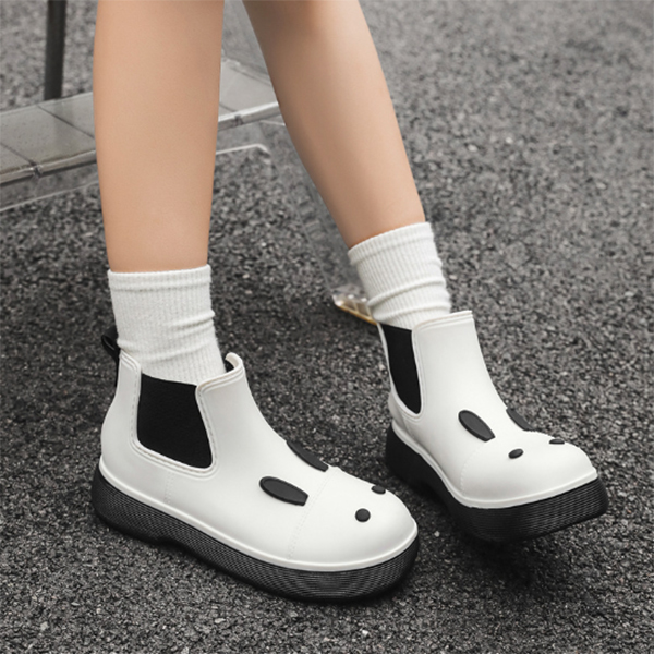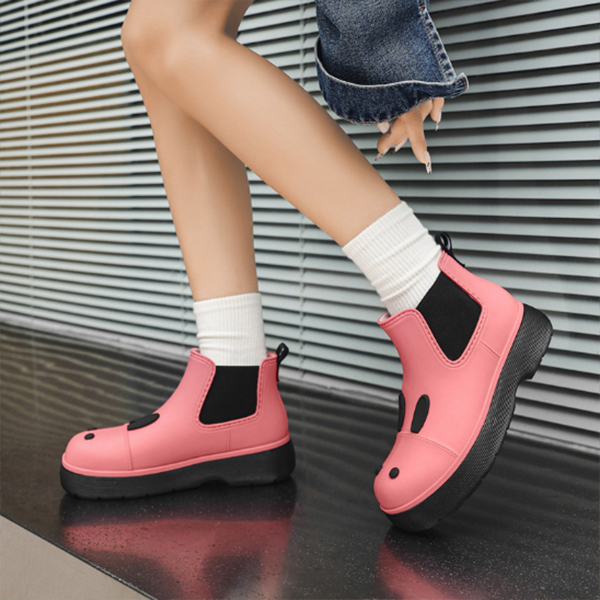 雨の日も楽しくなる可愛い動物の顔デザインが特徴的なレインブーツです。