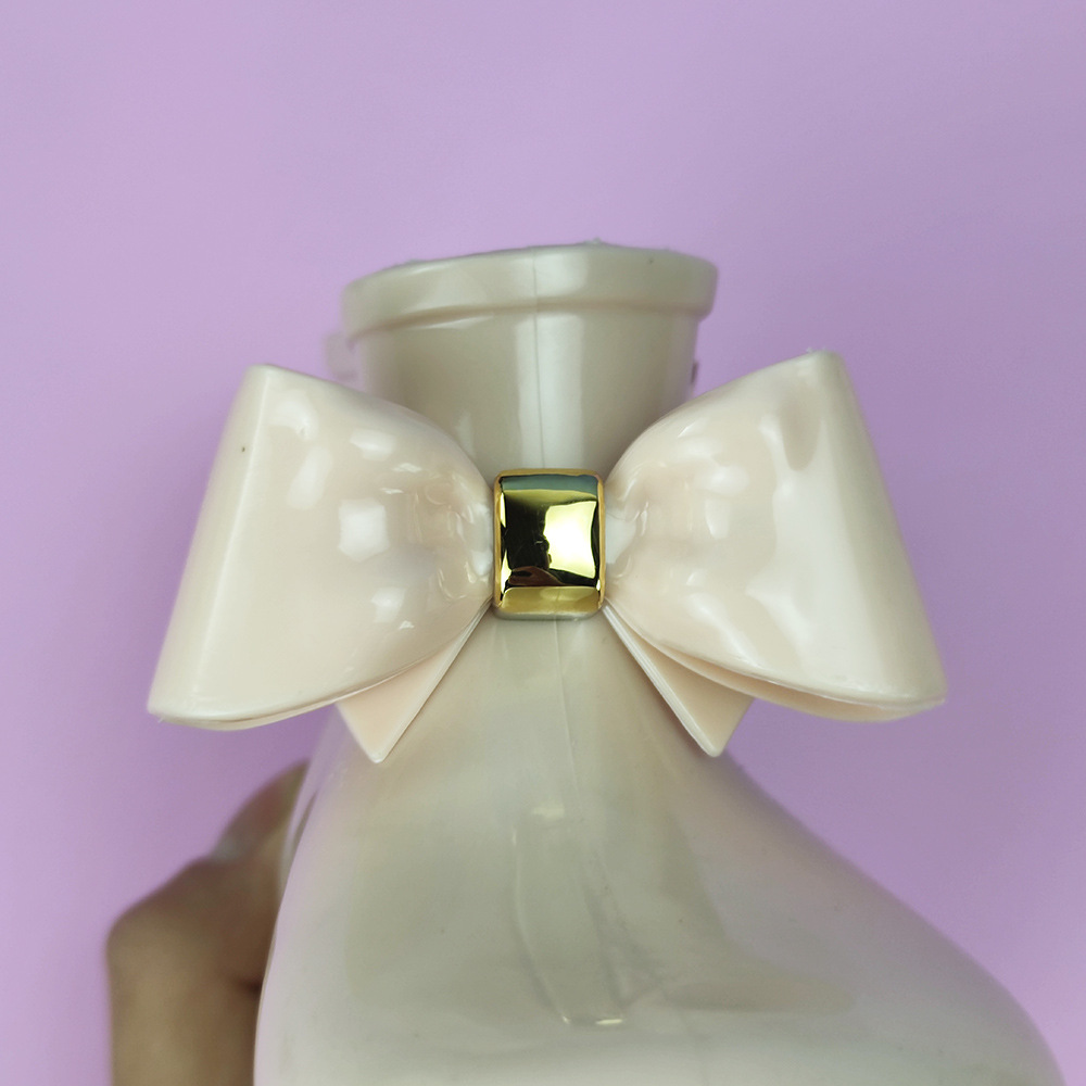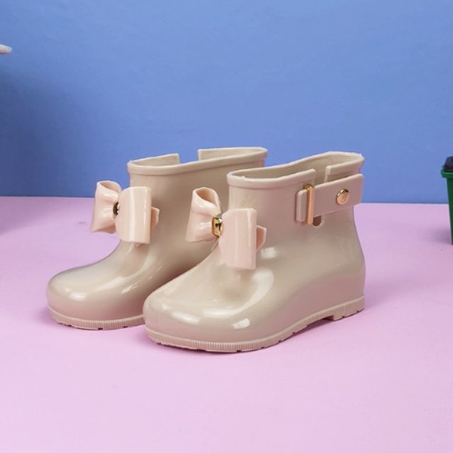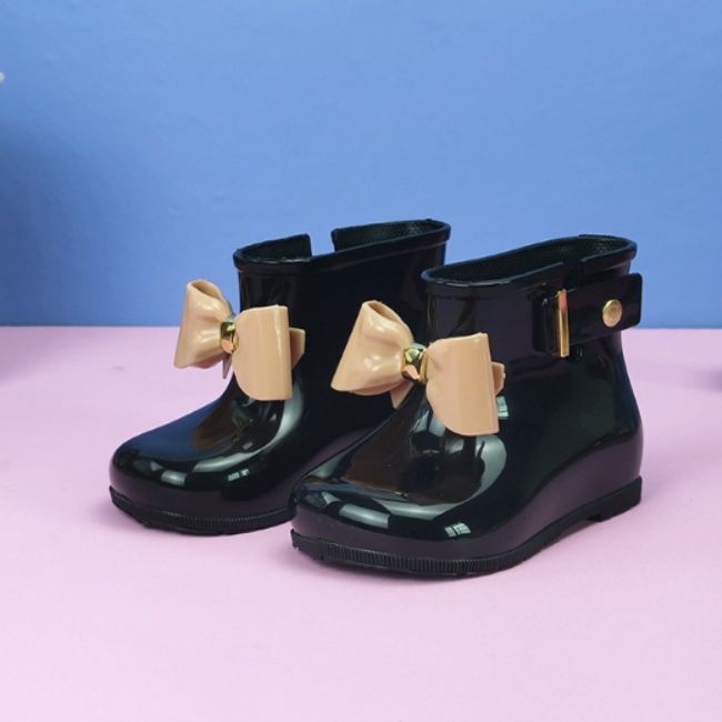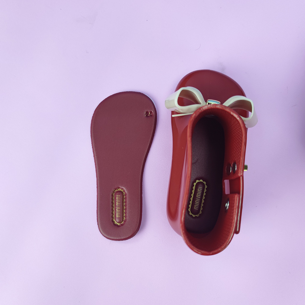 履き口に施された大きなリボンと金具のアクセントが女の子らしさを演出します。