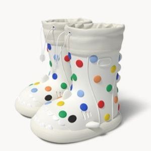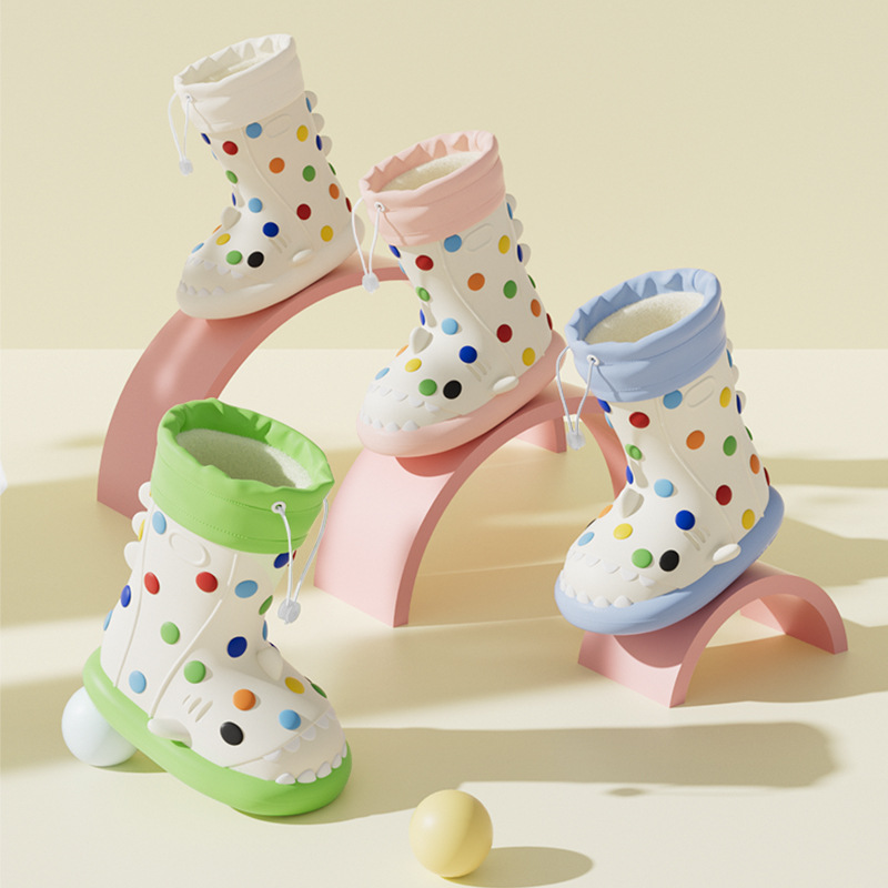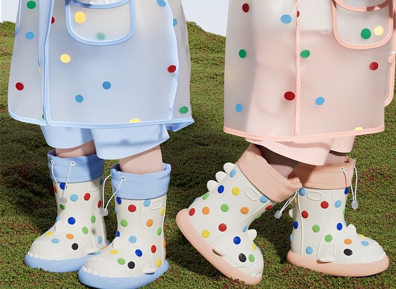 楽しい水玉模様が散りばめられたキッズ向けレインブーツです。
