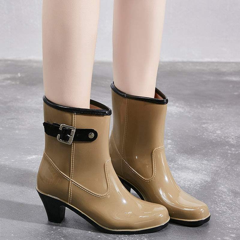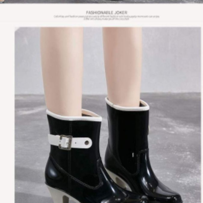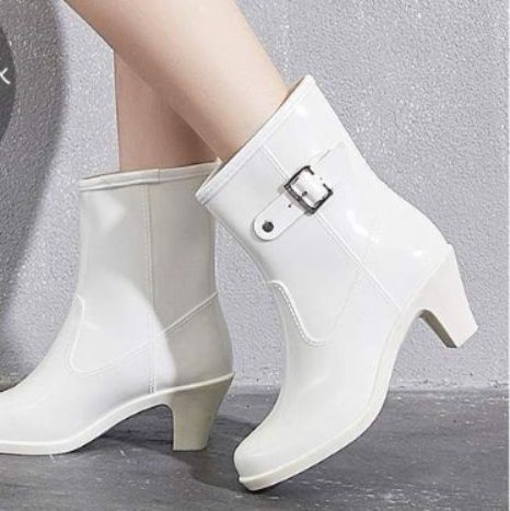 雨の日もおしゃれを楽しめるヒール付きのレインブーツです。